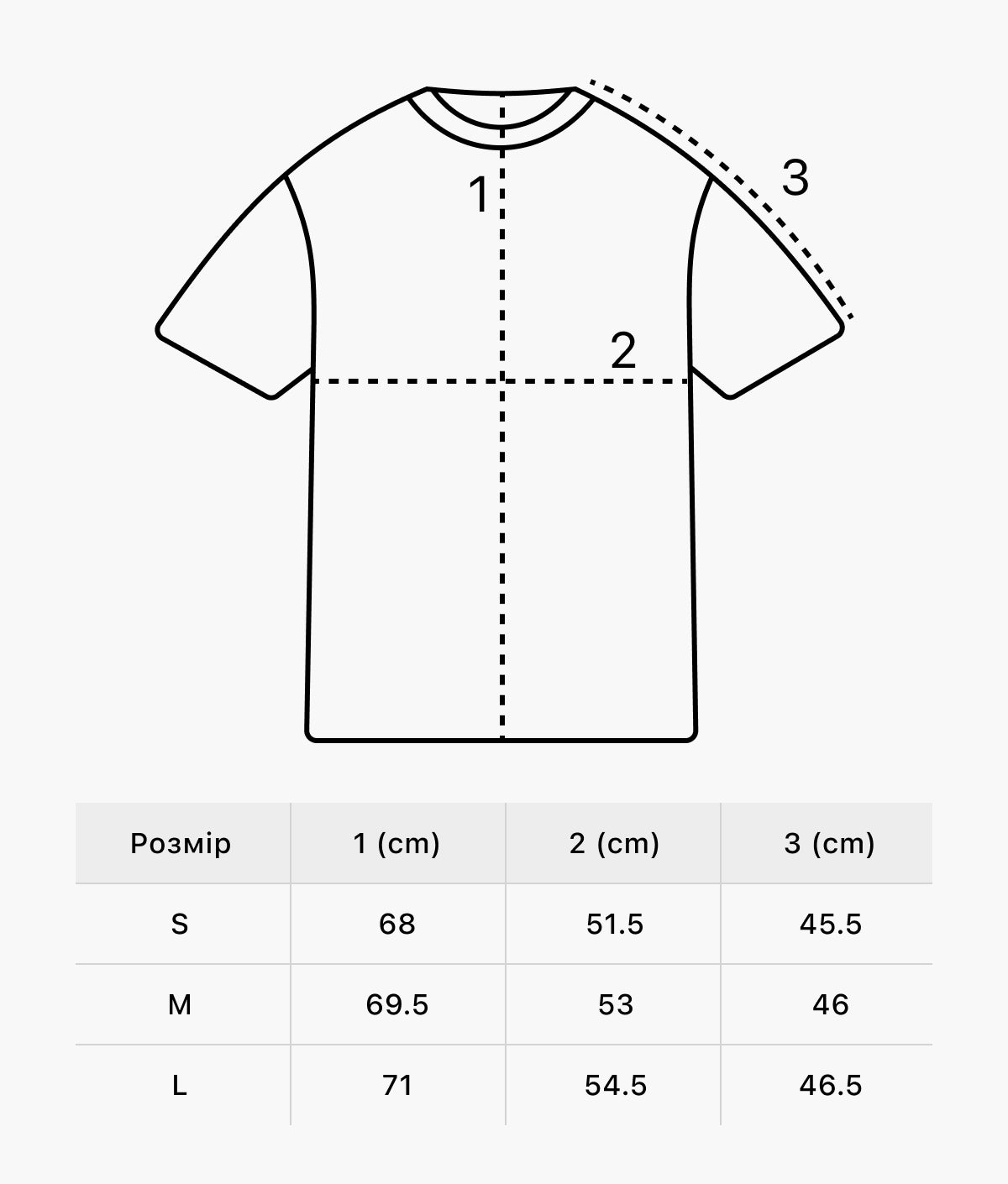 Збалансований оверсайз крій, приспущена лінія плечей, кругла горловина. Бавовна високої щільності з додавання еластану.